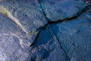 One very obvious reason that a number of the cup-and-ring carvings were not drawn correctly by historians and archaeologists alike, would be the weather! Archaeologists are renowned for heading for cover when the heavens open, quickly finishing their jottings and running for cover — and this would obviously have been the case with some of the drawings, both early and modern. Bad eyesight and poor lighting conditions is also another reason some of the carvings have been drawn incorrectly, as a number of modern archaeology texts — including a number in Boughey & Vickerman’s (2003) book — illustrate to all competent students.