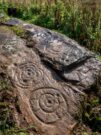 Etched onto a sloping stone overlooking the blue panorama that is Loch Swilly, this petroglyph has a 180º view of the landscape, from the southeast through to the northwest.  This panorama—unimpaired by trees thanks to its proximity to the sea loch—was probably an important ingredient in the mythic function of the carving and is something we’ll return to shortly…