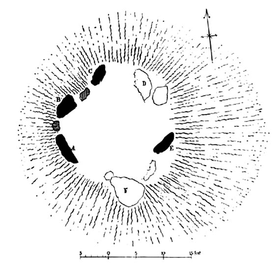 “a recent examination of the ground around the circle…suggests that at one time there was an outer circle of stones concentric with the existing one. Most of the stones were removed in order to make more of the field available for cultivation, but there are still large stones buried within a few inches of the surface.”