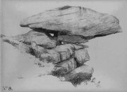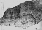 Much has been written about the petroglyph on the this wedge of stone, which covers much of its surface. Although a Mr J. Thornton Dale did a fine series of quite accurate drawings of this stone (and others on the moors) between 1878 and 1880, the first literary description of the Pancake rock carving appears to have been by the renowned J. Romilly Allen in 1882 (who evidently visited the stone on a cloudy or overcast day), saying that: