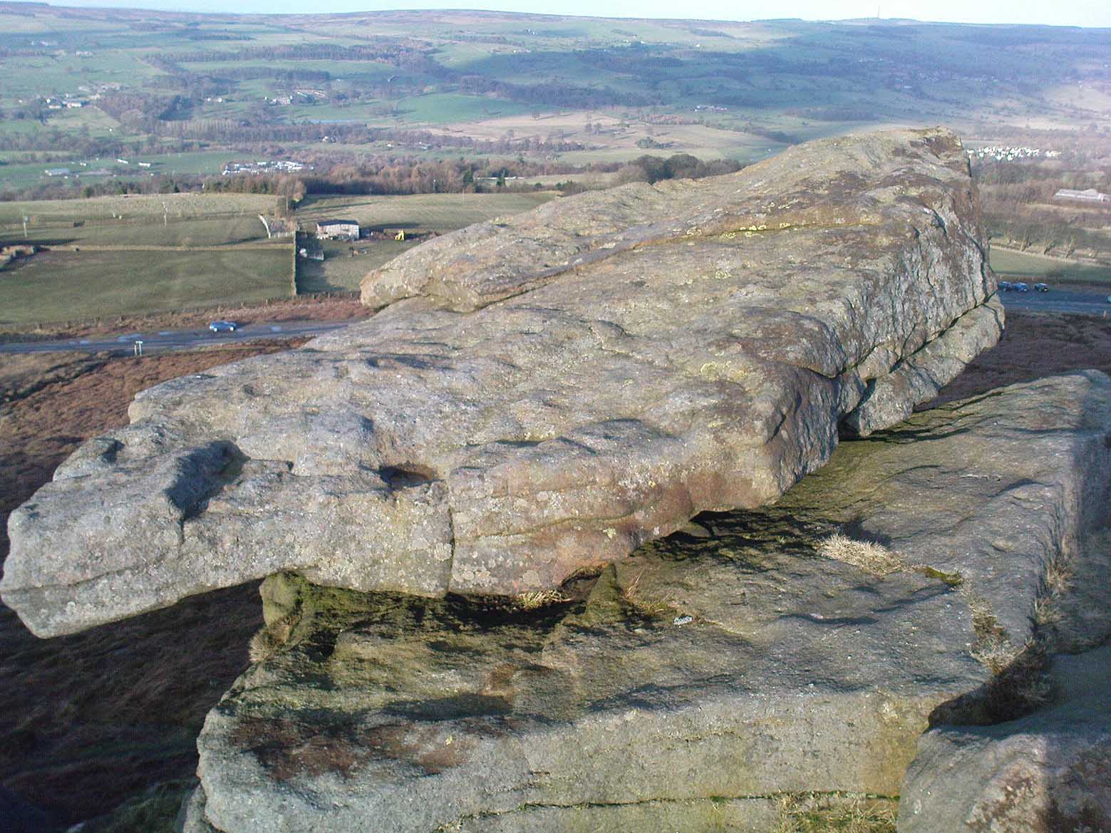 This latter assumption is highly probable. Strong animistic notions (moreso than usual) would be very evident here. Its position on the land with its outward focus from here towards other notable points in the landscape (Almscliffe Crags is one obvious focus); as well as looking at the rock itself from other viewpoints, give the stone considerable ritual importance. Sections of the moorland plain behind it—known as Green Crag—was the Land of the Dead in ancient times, and it is more than likely that death rites would have been enacted here — though we may never know what form they took.