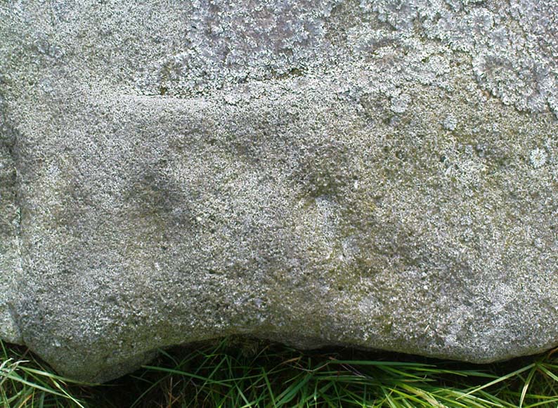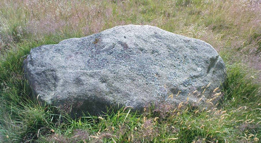 First discovered in July 2009 when Keighley volunteer, Michala Potts of Bracken Bank, did further ramblings amidst the long grasses hereabouts. Its name comes from the fact that it’s found just next to the footpath that cuts across Rough Holden from the TV mast beneath Rivock. The carving’s a very simple plain design, as the photos show, with just three faded cup-markings etched onto the stones northeast face.