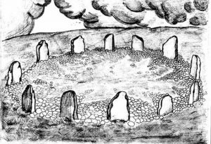 “The stones which constituted the circle at the time of their removal stood upwards of three feet…and the remain formed a striking object on the moor. The original number of stones of which the circle was formed is unknown, having long been in ruin and reduced in quantity before being finally removed. This was effected about twelve years since by the present tenant of the dam.” – that is, around 1859.