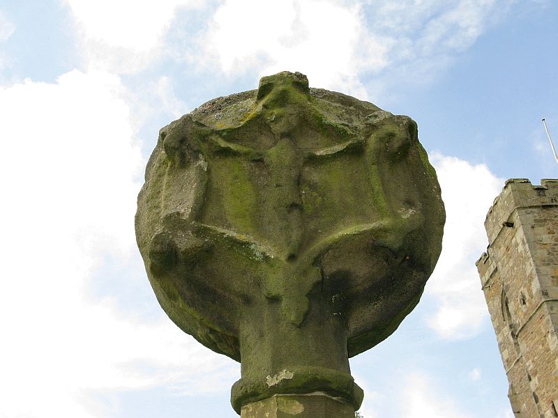 The curious-looking upright in the churchyard here has a mixed history by all accounts. The oldest portion of the cross is universally ascribed to be the top section, rediscovered when it was dug up “shortly before 1801.” (Ackerley 1947) It possesses a carving of the crucifixion on one side, and some curious figures carved on the other, which some ascribe to being Jesus, but could well be the triple female element which would still have been prevalent in peasant culture at the time it’s thought to have been carved. The original shaft carrying the ‘cross’ had long since been destroyed and so, according to Jessica Lofthouse (1946),