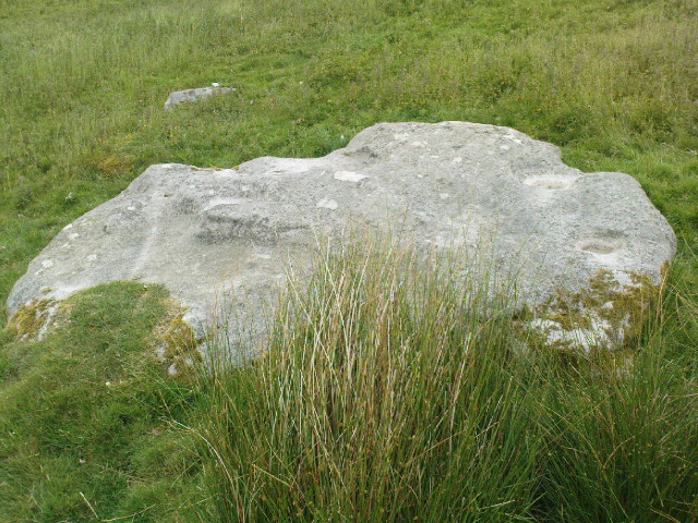 A large rounded stone just on the meadows before it begins to slope more steeply downhill, there are several of those large natural ‘bowls’ that we see on a lot of cup-marked and not-so-cup-marked stones in our northern hills. These basins or bowls may, at times, may have had significance for our ancestors, but it’s the cluster of cup-markings on this stone which are of importance to us here. There are perhaps as many as a dozen cup-marks here, all very well worn, and mostly to be seen on the eastern sides of the rock. When I came here with Paul Hornby and QDanT a few months back, the cloud cover stayed with us all day, so I didn’t get any decent images of the carving. Ne’er mind…