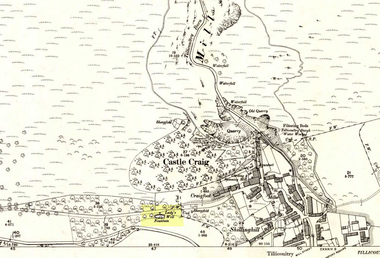 “In the year 1839, a Mr John Henderson built the only woollen mill…the water for the steam engine of which was got from the Ladies Well”,
