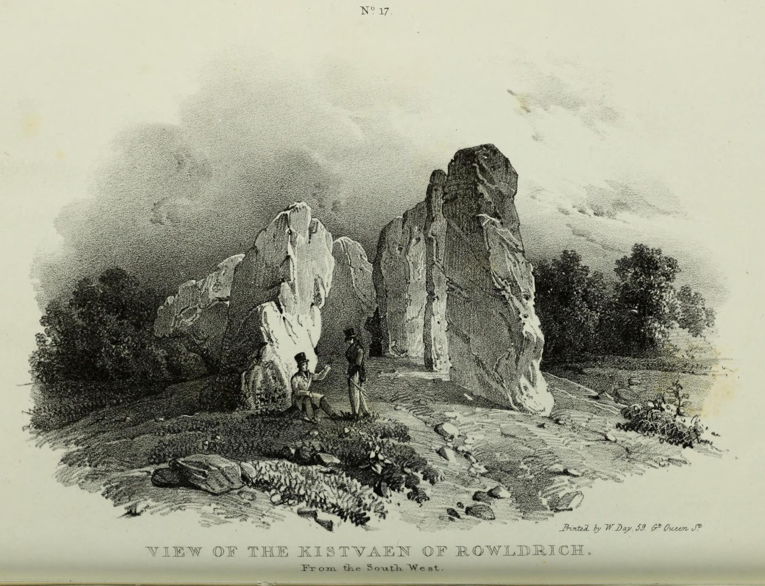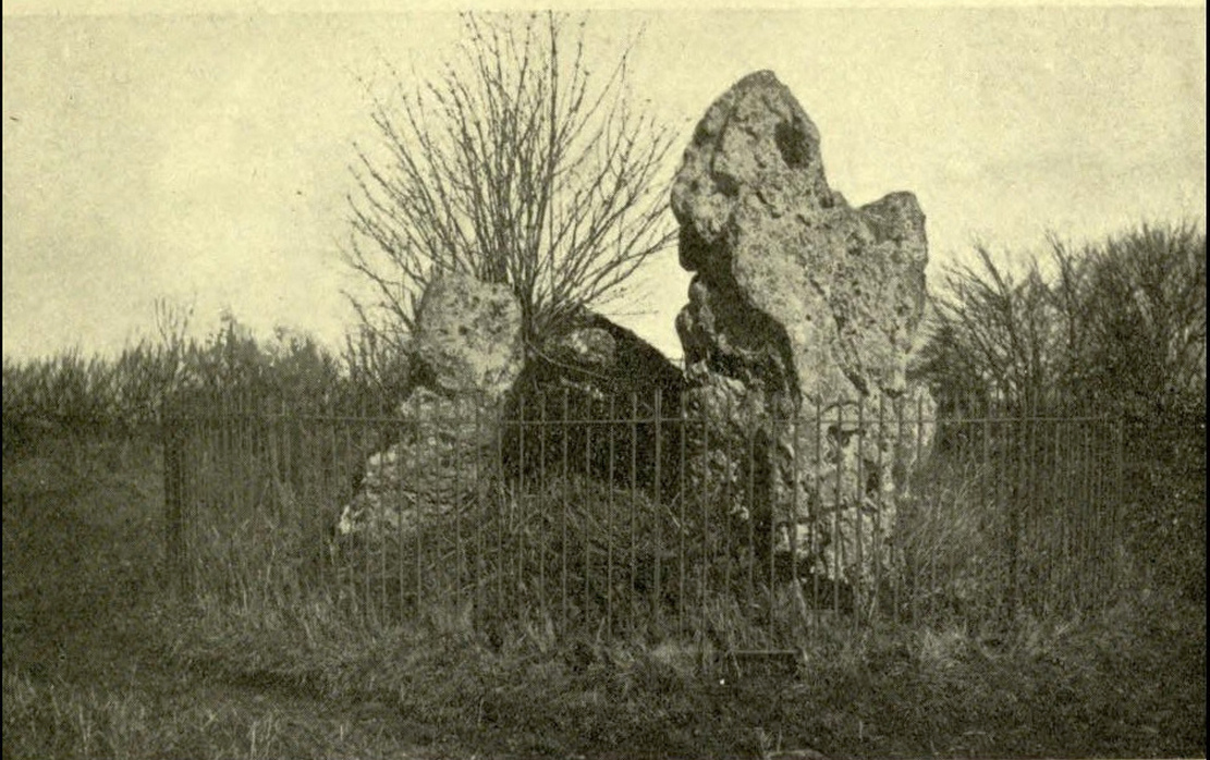 The general archaeological opinion is that the place is a ‘portal dolmen burial chamber’ of which the capstone has fallen. The Oxford archaeologist George Lambrick (1988) postulated the stones to have been covered with a mound of earth, but any evidence supporting this has long since gone.