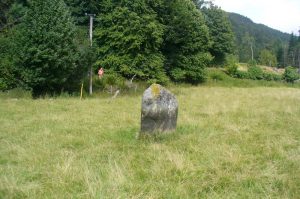 Close to the walling on the WNW just a few yards away, we see a cluster of small rounded stones and a couple of larger stones, much overgrown, giving the impression that they were field clearance. There is a possibility that they may have had something to do with the standing stone in earlier times; the small stones being very worn and perhaps being part of a cairn—although there seems little evidence of this in the on-line aerial surveys. The stone was also mentioned in Elizabeth Stewart’s Dunkeld (1926), where she wrote: