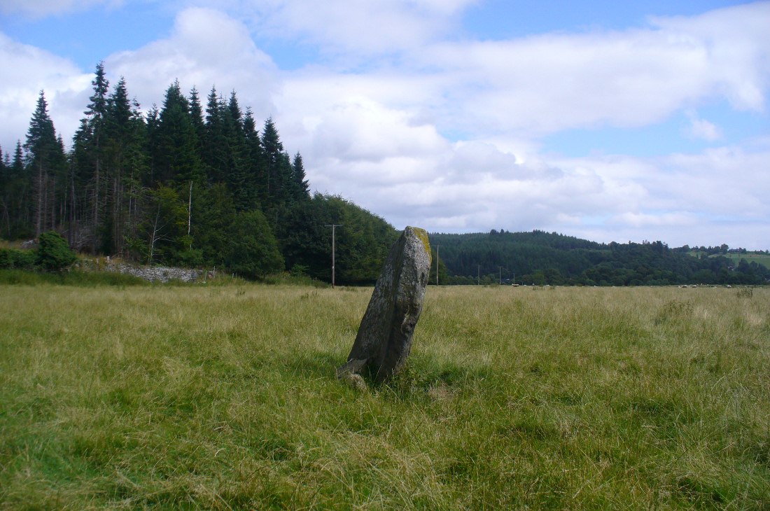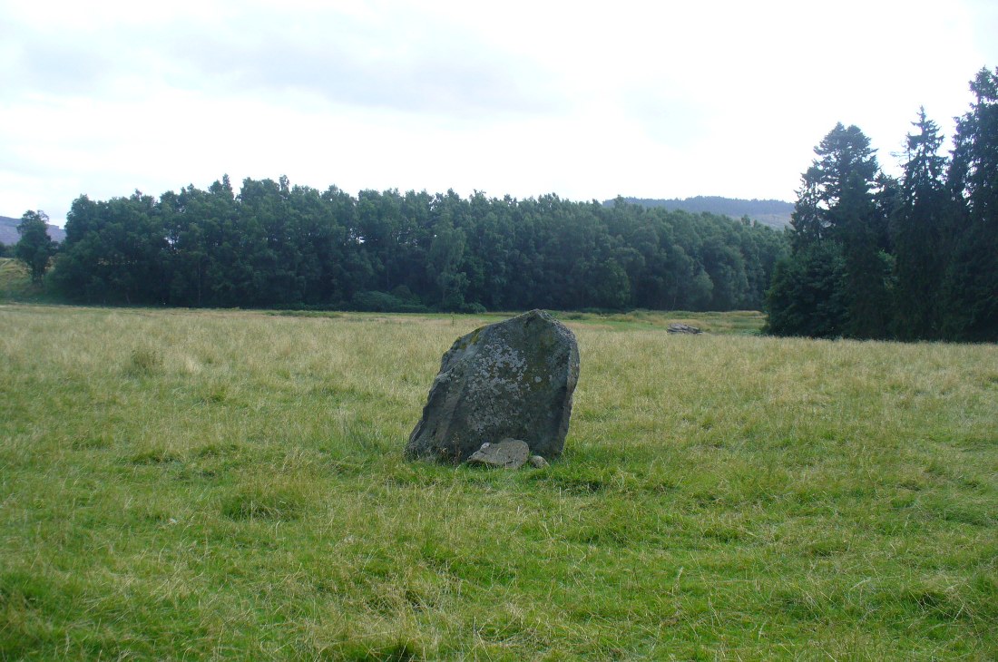 Take the A923 road through Dunkeld and across the river, making sure that where the road veers sharply to the right as you go out of town, you go the left as the road bends round. 100 yards along, past the trees on your left, fields open up. A few hundred yards along on the left, you’ll note the small standing stone about 50 yards in the field below the wall, getting close to some trees again. That’s the spot!