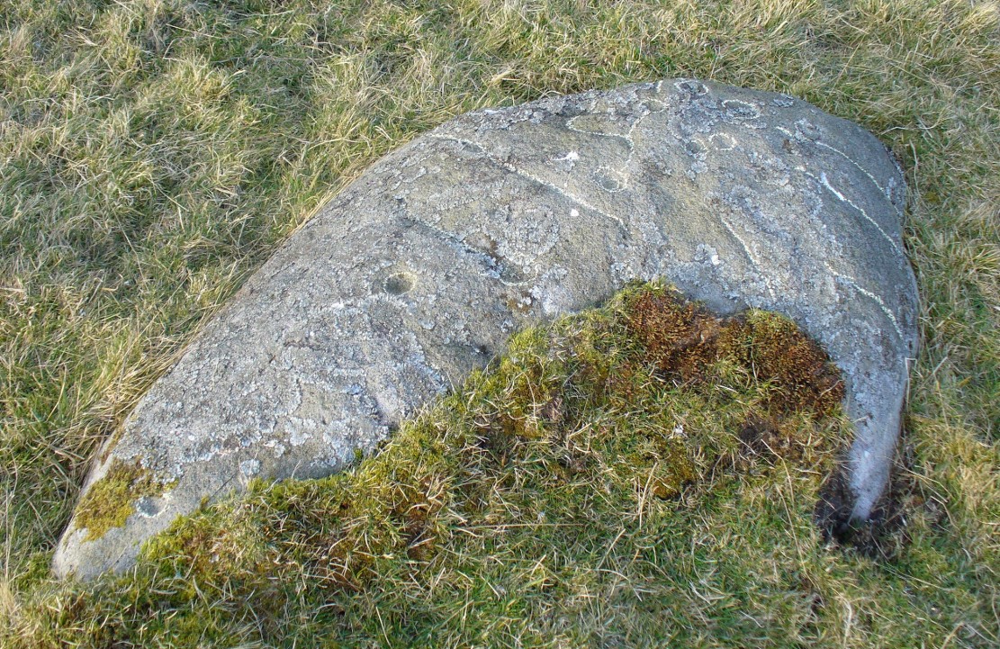 It seemed obvious that an even larger design was apparent on the rock, but the stone had been covered in an age of lichen (hence the name) which I didn’t want to disturb; and although no distinct cup-and-ring can be seen here, it looked as if one such motif might have been hiding beneath the lichen cover. But let’s leave the rock and lichen to their own quiet life and move on our way…. to the other carvings nearby, like the impressive Fraggle Rock, or the more basic Snake Stone. Then follow your nose and seek out the other carvings in these fields…