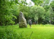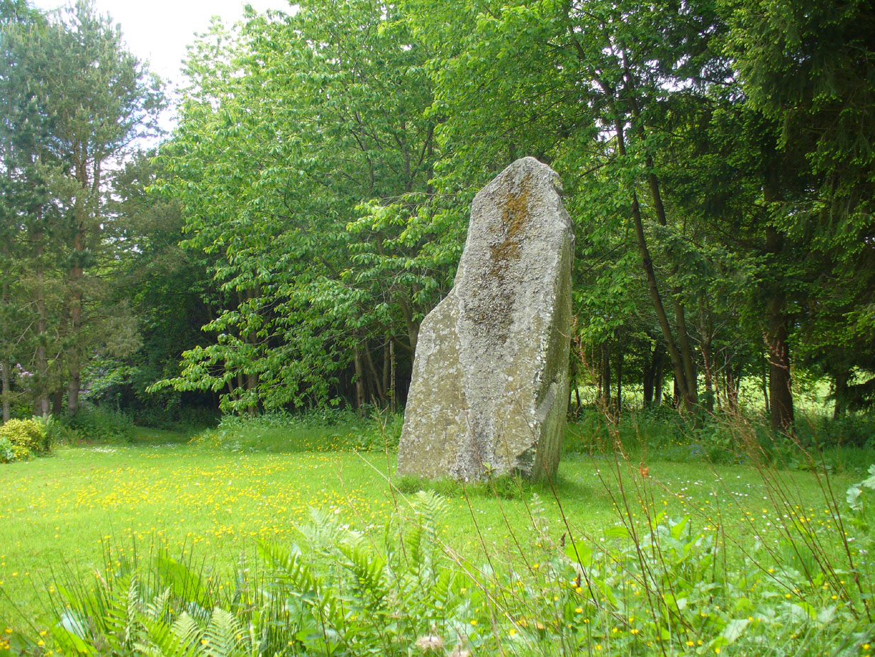 “In a field on the other side of the house is another monument to a hero of that day, to the memory of the brave young Seward, who fell, slain on the spot by MacBeth.  A stupendous stone marks the place; twelve feet high above ground, and eighteen feet and a half in girth in the thickest place.  The quantity below the surface of the Earth is only two feet eight inches; the weight. on accurate computation amounts to twenty tons; yet I have been assured that no stone of this species is to be found within twenty miles.”