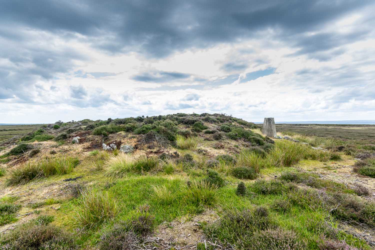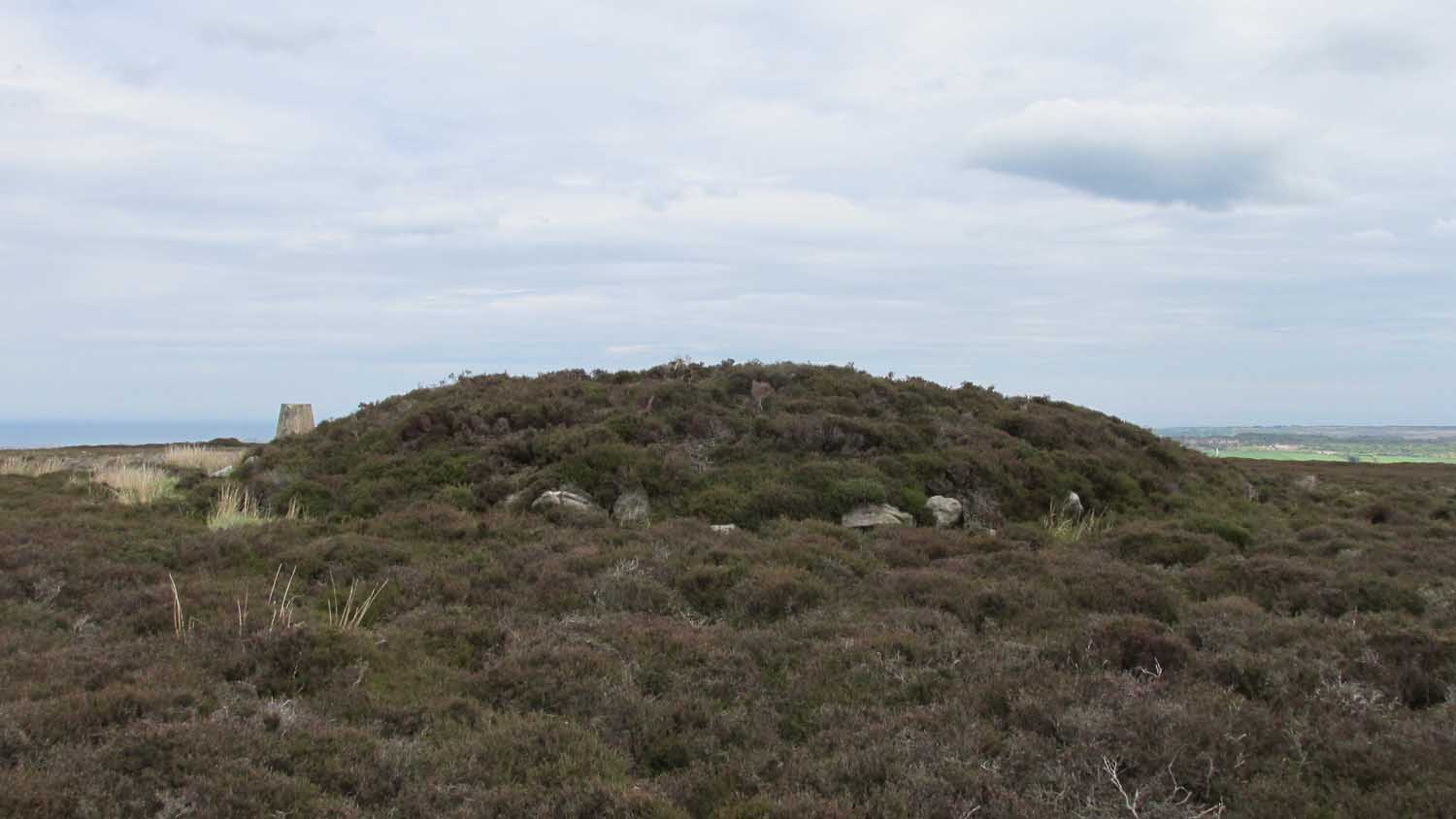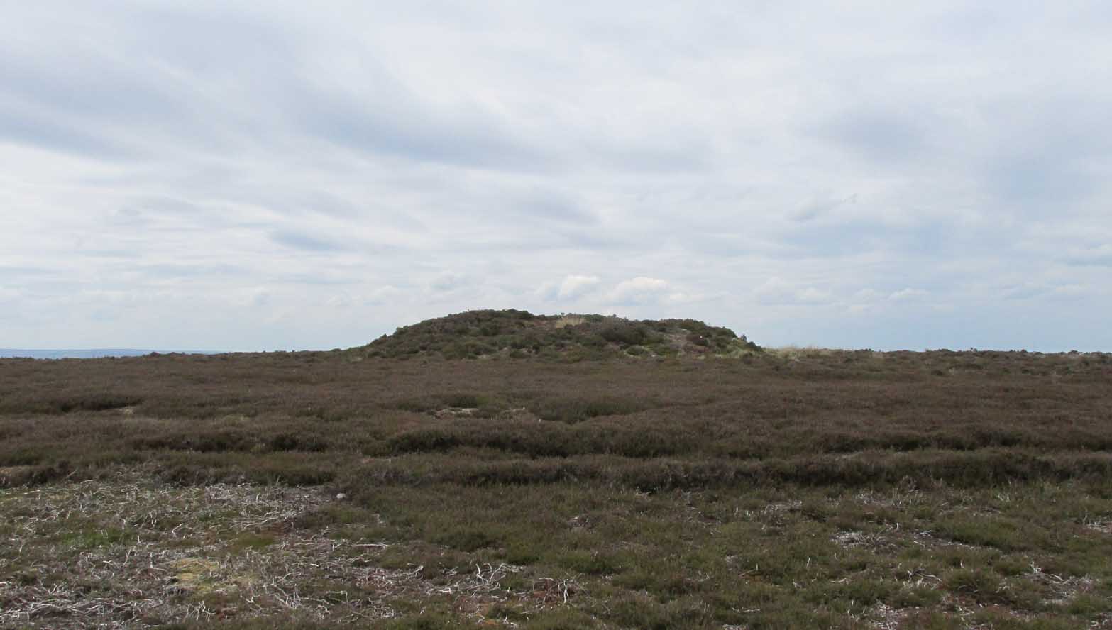 Along the A169 road that runs may miles from Whitby to Pickering, as you go through the small town of Sleights, the road gets steep for a mile or so, until you reach the moorland tops, where the road runs dead straight. After 1.2 miles (1.93km) along the straight road, a small minor road is to your right. Go along here for literally half-a-mile (0.8km) where you’ll see a small dirt-track on your right, with a locked gate. There’s place to park here. You’ll see the large rounded mound of Flat Howe-2 about 200 yards NE. Head there, then another 250 yards north. You’ve arrived!