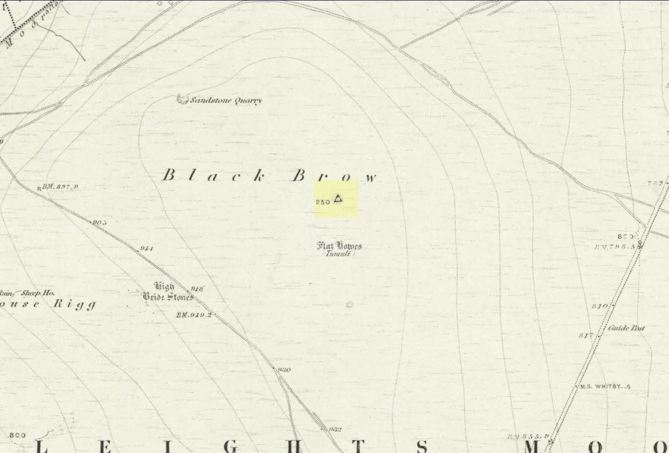 Of the two ‘Flat Howe’ burial mounds on Sleights Moor, this is the northern one of the two, being 250 yards (230m) away from its southern companion (at NZ 85510 04614). It’s quite a big fella too – and so you’d expect there to be quite a bit of information about it. But there isn’t! No recorded excavation has taken place here, despite the top of the monument being cut into. But this might have occurred when the Ordnance Survey lads built one of their triangulation pillars into the side of it. Thankfully it’s not done too much damage.