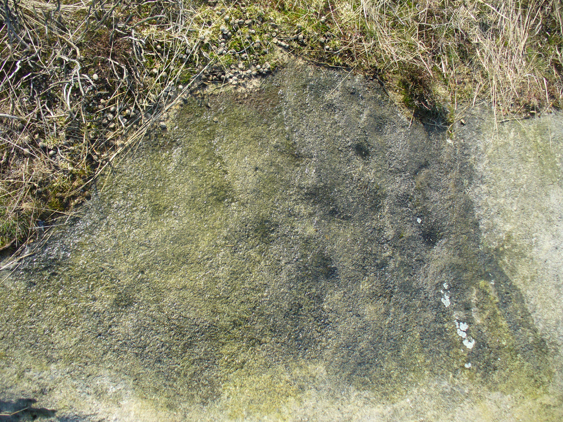 It consists of a single cup-mark on the northern edge of the stone, whilst on the sloping southern part of the rock are a number of very faint cups, eroded by them there millenia of Nature’s wind and weathering. One or two of the cups are just visible in good lighting, but what are almost certainly a few more can be seen when the rock is wet and in low daylight hours. It’s a design that’s probably only of interest to the hardcore petroglyph fanatics, but without doubt this is yet another carving within this obviously important prehistoric enclosure.