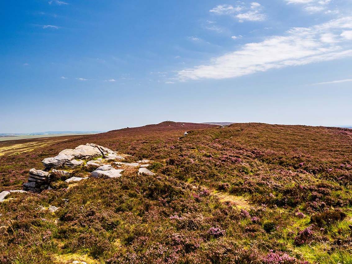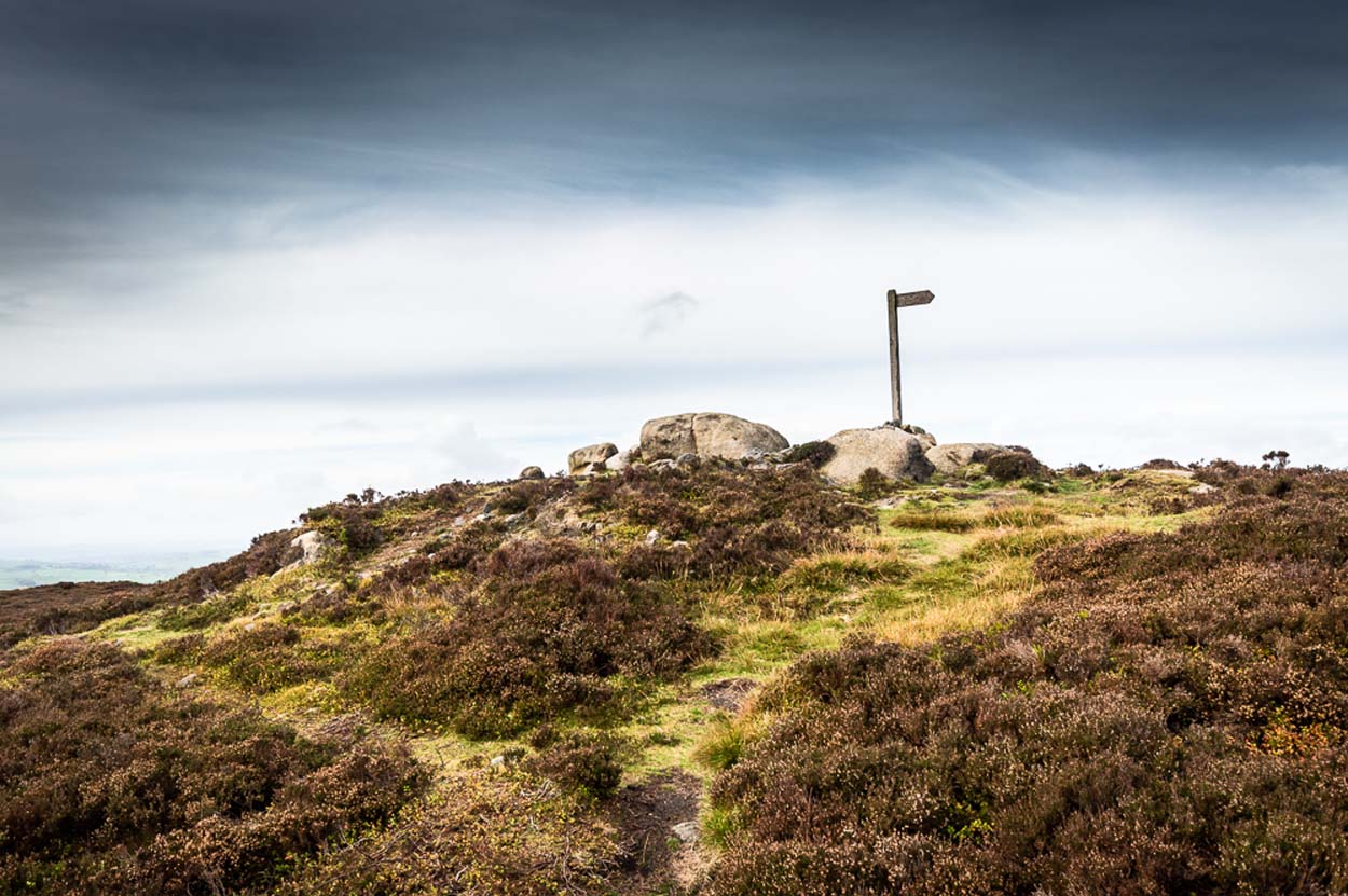 Of the two great cairns on Beamsley moor, The Old Pike is the more peculiar of the two because—unlike its partner along the ridge—several large boulders near its top give the impression of being Nature’s handiwork. This may be the case, but Nature isn’t the lass who laid down the mass of smaller rounded stones that are mainly visible on the west and southern sides. These have been placed there by people. But it’s not until you step back 40 or 50 yards that you get a more distinct impression of the place. The Old Pike rises up like a rocky nipple out of the heath, showing a very embedded overgrown man-made heap, typical of the overgrown prehistoric cairns that scatter our northern uplands.