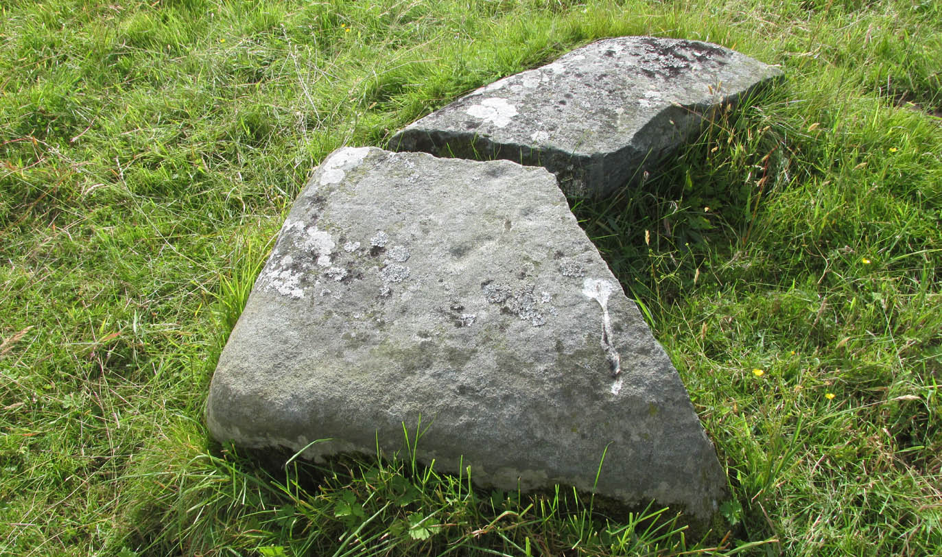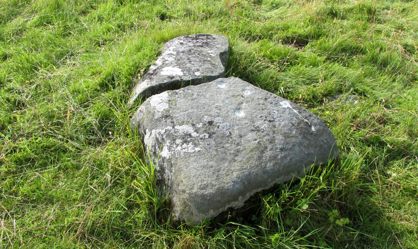 Along the A827 Loch Tay road between Morenish and Lawers, take the track uphill where Carie farmhouse and Tombreck are either side of the road. Walk up this track 2-300 yards till you go through the gate just past the sheep-folds on your left. Ahead of you is a small grassy hillock on your right upon which you’ll find the unimpressive Tombreck-1 carving. Walk down the grassy-slope to the boggy stream and then up the rounded knoll on the other side, where you’ll find a stone that’s been split in two. You’re here!