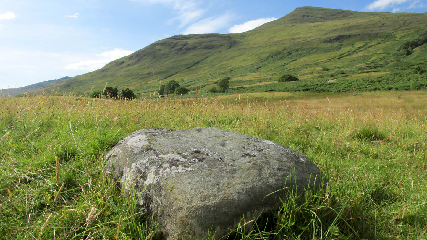 Cup-Marked Stone: OS Grid Reference – NN 64894 38308