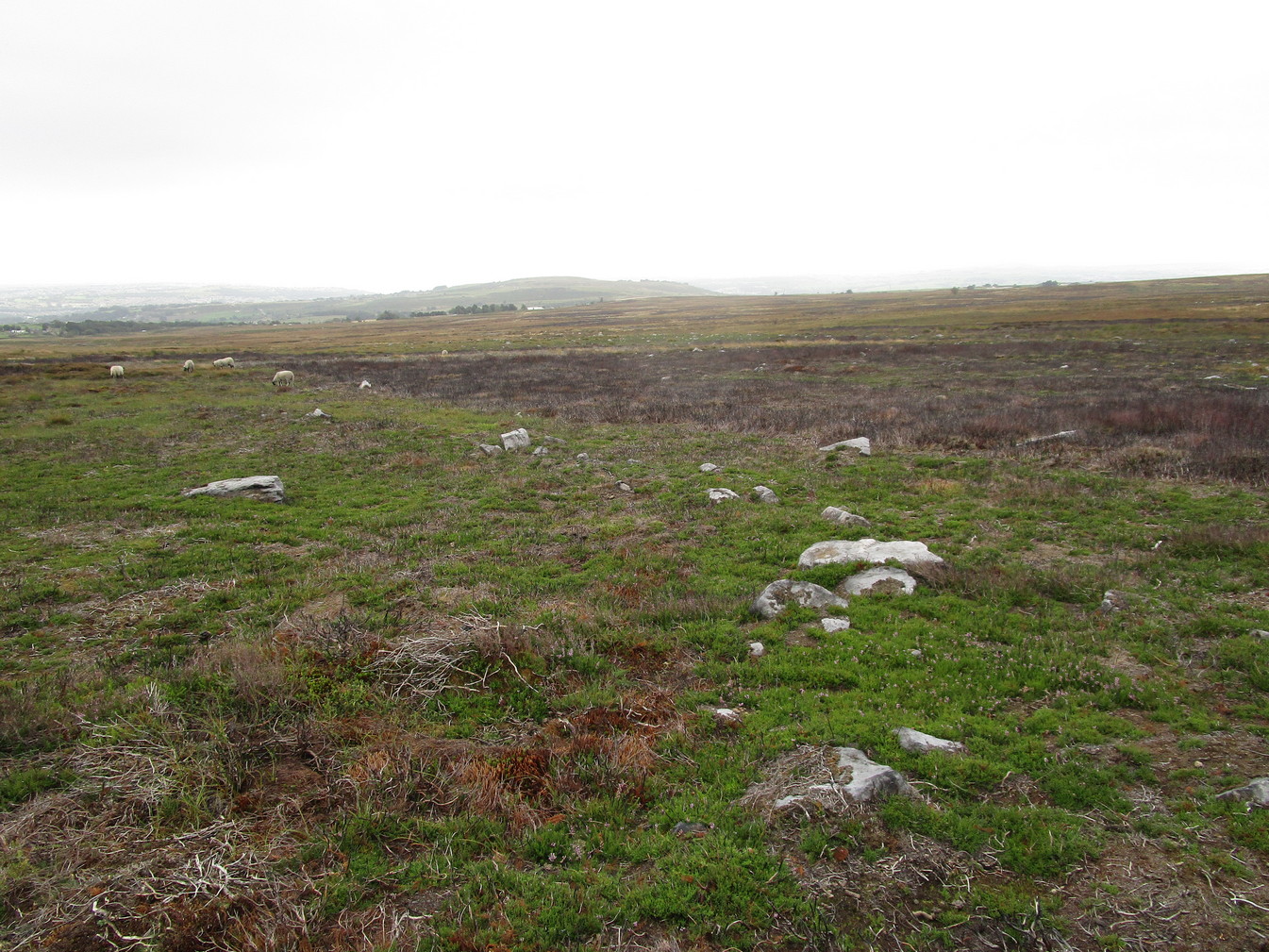 Two large open arcs of walling—like large letter “C’s”—with their open sides to the east, have been constructed next to each other, virtually coming together in the shape of an inverted number “3”. The walling in the southern arc—measuring some 33 yards in length and barely higher than 1 foot above ground level—consists of standard stones and rubble, similar to some of the hut circles that are found in greater abundance on the north-side of Ilkley Moor. The smaller, less visible arc of stones—some 18 yards of it—is lower in the earth. Both lines of walling may have been robbed in part to construct some of the extensive cairns close by, as neither of the two arcs were very high and it was very difficult to work out even what sort of structure they might have been.