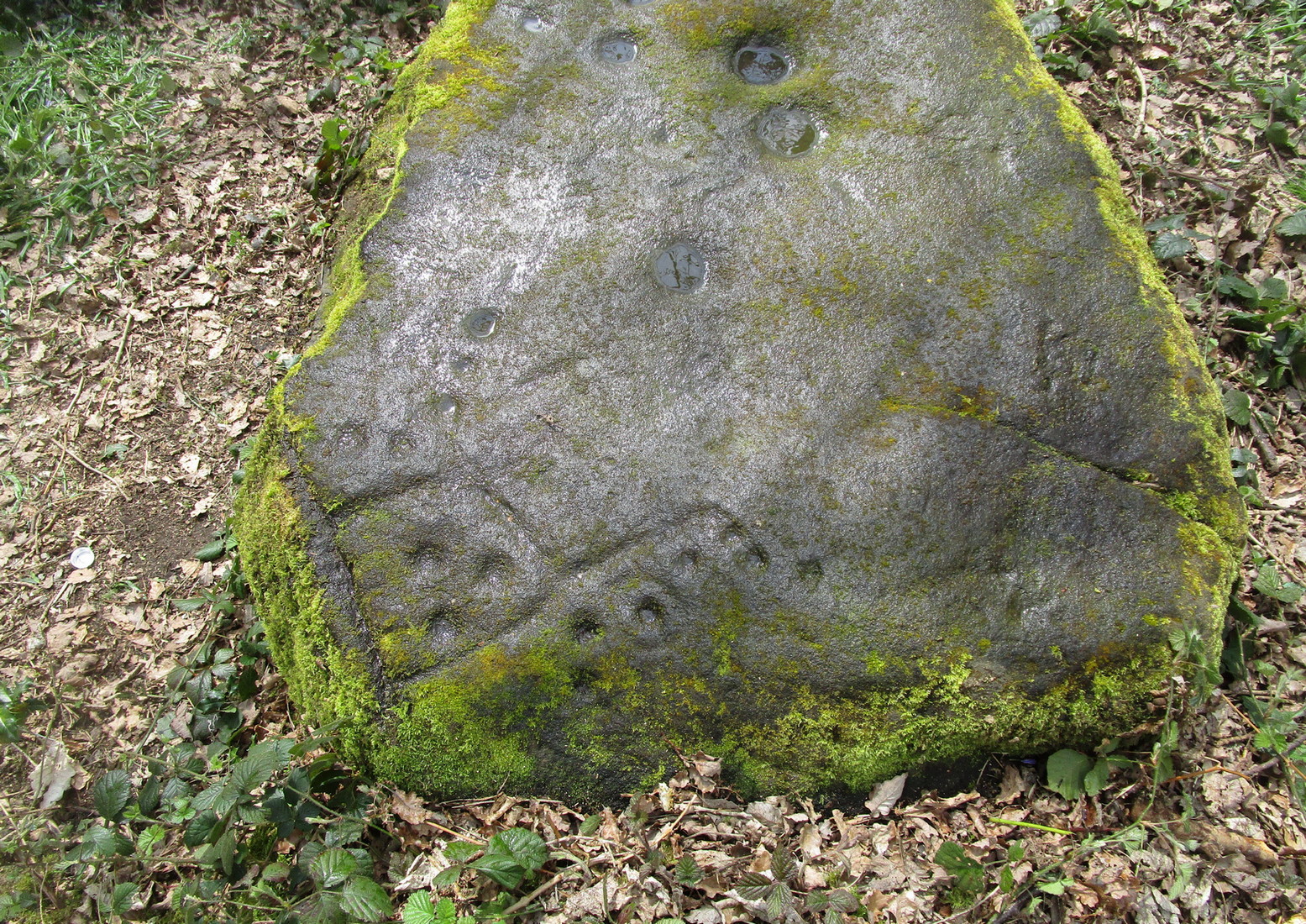 Rediscovered by the Leeds historian Don Cole in the 1940s, this complex multi-period carving etched onto a flattened rock surface is an unusual outlier from the Rombalds Moor complex several miles to the west. At its heart, around the semi-natural deep “cups” near the middle of the southern side of the stone, is the oldest part of the carving comprising a very faint incomplete triple-ring design which, as we move around it, almost has the look of a Newgrange-lozenge form to it. But I’m unsure…