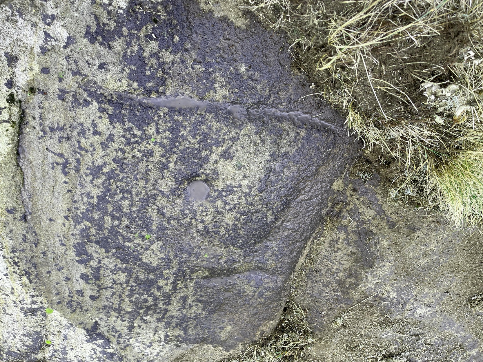 The main feature is a single cup-mark surrounded by a very wide ‘square’ ring (if y’ get mi drift). It was first mentioned and illustrated in John Hedges (1986) survey, who described it simply: