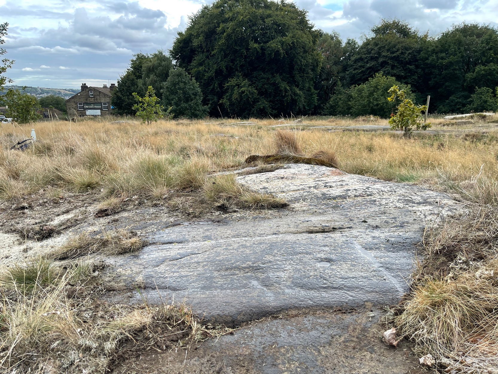 Once you’ve got yourself to the start of Shipley Glen, from the Old Glen House pub, from the car-park outside walk up the road for 60 yards (if you reach the next small car-parking spot, you’ve gone too far) then step off-road into the vegetation on your left and you’ll see the large flat fractured section of earthfast rock. Get low down and seek out the cup-mark first!