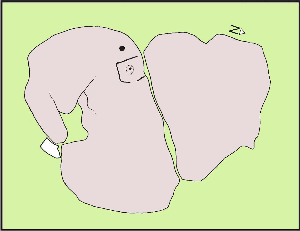 One of the two cups is presently beneath some shallow vegetation (easily removed if anyone’s passing), but the main feature of the large enclosing square and its central cup is presently exposed and can be seen when your eyes eventually adjust. Interestingly, Hedges shows the existence of a faint ring around the central cup inside of the larger square enclosure. If someone is able to capture a photo of this, please add it on our Facebook page. 🙂