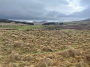 The circles—and their half-dozen companions on the far-side of the wall—were shown to the archaeologist Margaret Stewart in the 1960s by the farmer at Monzie, who made notebooks of various places and traditions in this area. Both of them are between 12 and 13 yards across, with the outlining walls that define them still thankfully visible above ground level—just! The hut circle that’s closest to the modern wall is more oval-shaped than its circular companion, both of whom have their respective doors or entrances on the southwestern sides—but these were equally difficult to make out when we came here.