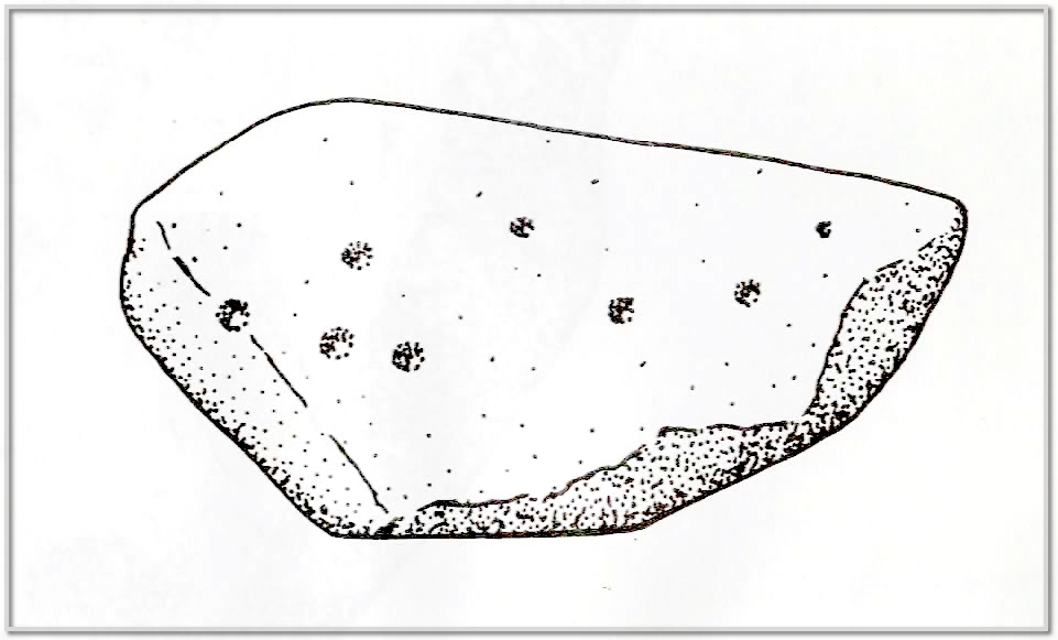 In this neck o’ the woods, cup-marked stones are very rare.  This one was described in Phil Vine’s (1982) regional archaeology survey as consisting of eight cup-marks on a piece of stone three-feet across.  The carving, he told, could be found outside of a “former blacksmith’s shop, immediately south of Chestnut Cottage”, but was removed some time ago and is now in “private possession.”  Very little else seems to be known about it and there are no other prehistoric sites in close attendance that could help us contextualise it (eg, hut circles, cairns, standing stones, etc).  It was mentioned in passing in Gwilym Hughes’ (2000) short piece on the Netherfield cup-marked stone 25 miles to the north-west, but he doesn’t appear to have seen it in the flesh, so to speak.  So what has become of it…?