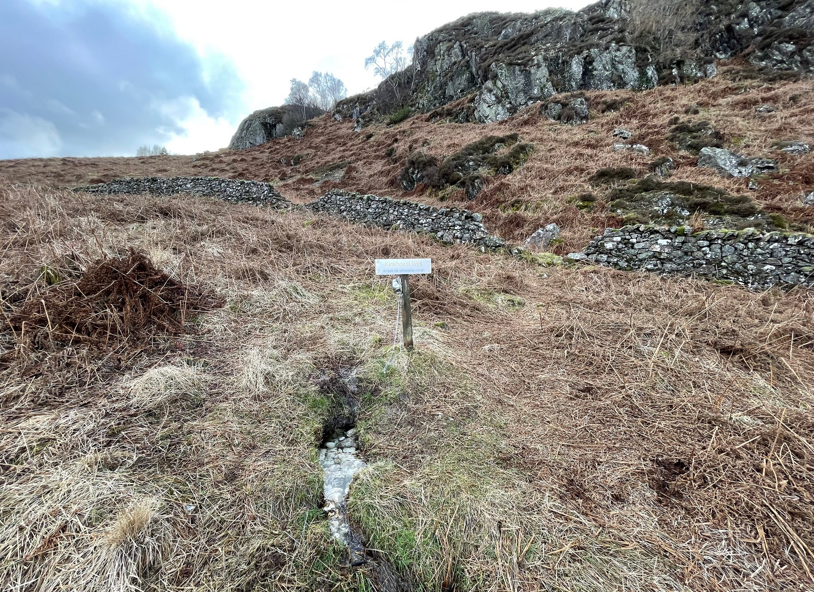 It’s one of many whooping cough wells that are found in the Perthshire hills—and most are actually large boulders with hollows into which the rainwater collects and it is this that is used medicinally and not necessarily the spring water.  A curious thing indeed…. and I’ve come across Highland folk who were taken to them when they were young children who’ve told me that their whooping cough was subsequently cured!  Intriguingly, there is a large boulder just below this well, upon whose top is a natural bowl in which rainwater collects—and although I can find nothing specific telling of such a tradition here, above Comrie, it’s possible that the relationship between stones and wells, found at other places in the Highlands, also existed here.
