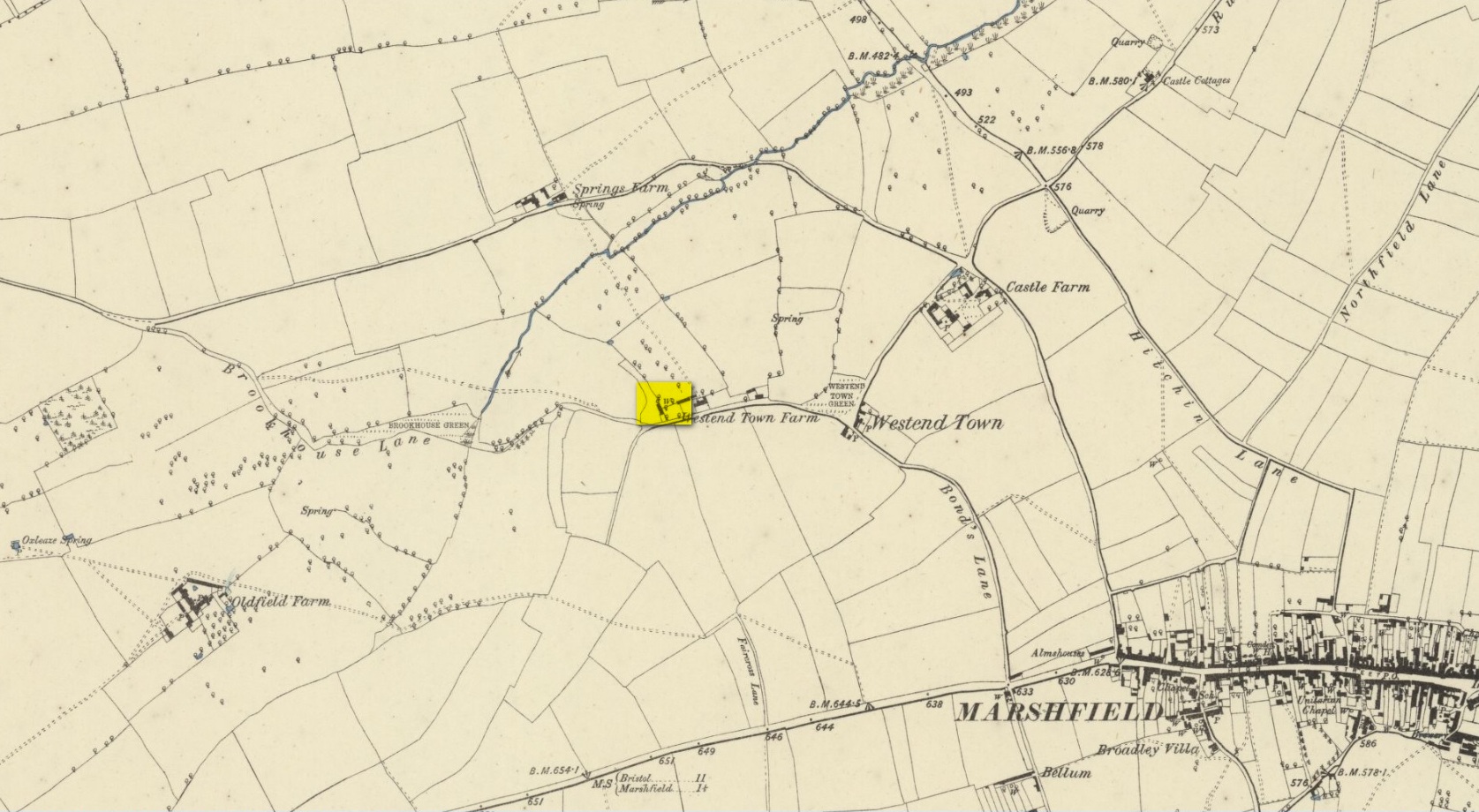 Westonton is the old farmhouse of Westend Town less than a mile northwest of Marshfield where, on early Ordnance Survey maps, a Well is shown. To the north of this is Springs Farm. This latter name probably has no bearing on St Pancras’ Well; but the location cited by Rudder of the well being in Westend Town gives us a damn good indicator as to where local historians should dig for this forgotten sacred site.