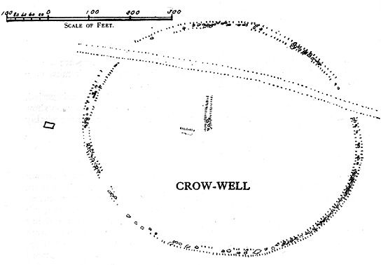 Hereabouts Cowling also found other remains dating from the neolithic period, including walling, cairns, hut circles and cup-and-ring stones. He thought that “the name Crow-well appears to be the modern equivalent of ‘the circle of the well'” — and although I doubted this in my Old Stones of Elmet, I have since come to realise the truth of his words!