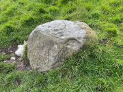 On this somewhat isolated stone on the northern sloping edge of Craven Hall Hill we find a small cluster of shallow cup-marks, first noted in the 1980s and eventually mentioned in a survey by Boughey & Vickerman (2003) where they described it as a,