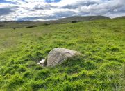 I came across this very basic carving when checking out a couple of others close by and found that it hadn’t been recorded before. It’s nothing special to look at, but is an outlier of the main Craig Hill cluster of carvings a few hundred yards to the west. The design consists of at least two cup-marks that have been etched near the top of the rock, although when I wet the stone it seemed as if a third one was next to the other two, as if in a line. The sun was at its peak when I found it, which meant that I couldn’t get any decent photographs to illustrate this—even when I watered the olde thing! It’s another carving that will only be of interest to the real petroglyph fanatics amongst you.