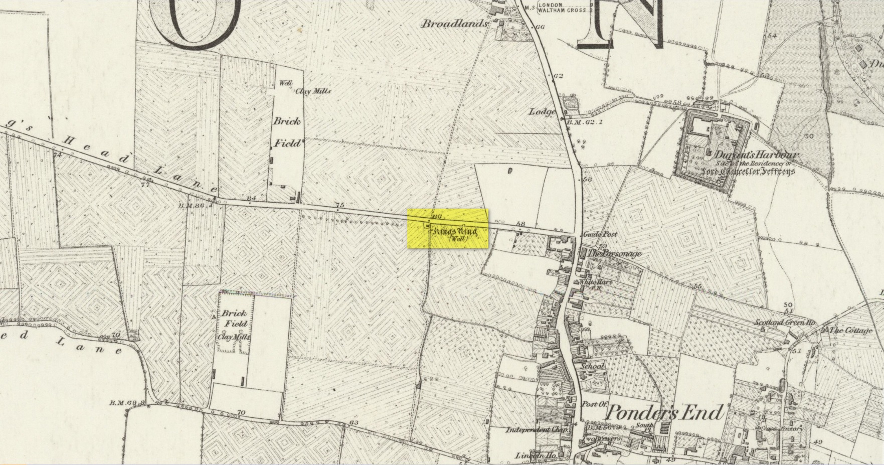For the last fifteen years I have been walking this road and had made it a determination to find this well. Success this summer! — and the hidden overgrown well was cleaned out a new steel pipe added. Chalybeate water now flows and a wooden box is at the roadside with a tin mug. On a wet roadside ditch this red water is very obvious where it joins the road.
