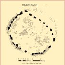 “Low, medium striated rock lying in slope of hill. SE end carries possibly up to eleven cups, possibly two sets grouped in arcs running into natural striations of rock, one of which may have been artificially enhanced by pecking.”