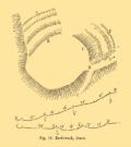 “The area enclosed by the innermost circular wall has a diameter of 130 feet.  The space between this wall and the second is 37 feet, and the space between the second and third walls 47 feet.  Almost every stone of this fort has been removed, but the lines and trenches which mark their former presence are still very distinct.”