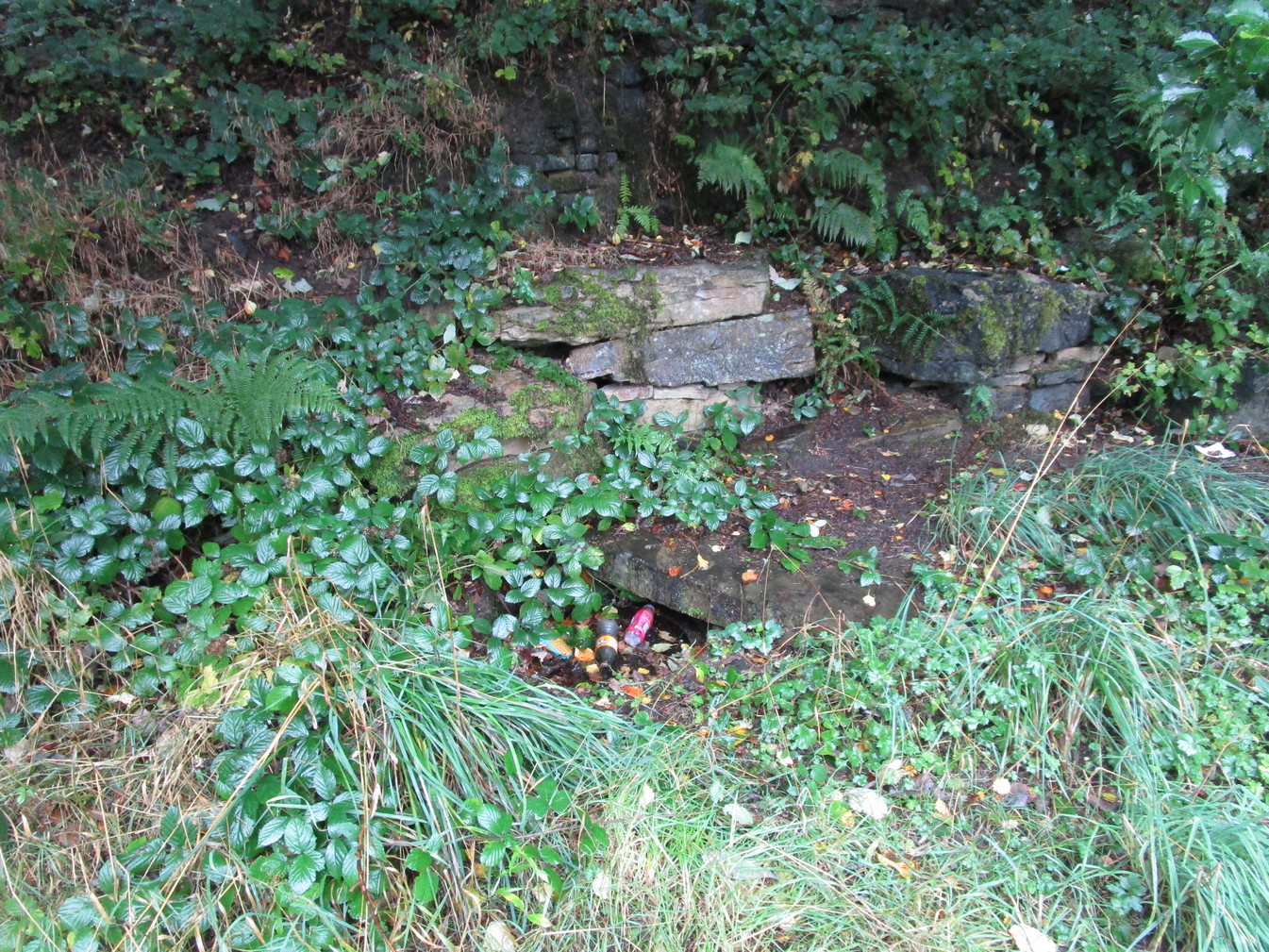 Highlighted on the 1854 OS-map, the site has seen better days. Although the waters today emerge from a blasted rock face and collect into a relatively modern round stone trough, there is a larger square stone structure just a few yards away that seems to have been where water was previously collected. According to local antiquarian Andy H, this was known to be a local Wishing Well in bygone times, but apart from this there are no literary accounts about the place. The area was decimated by 19th century Industrialists who, as is well known, destroyed much of our indigenous histories and sites—and the Huddersfield district was particularly hard hit by them.