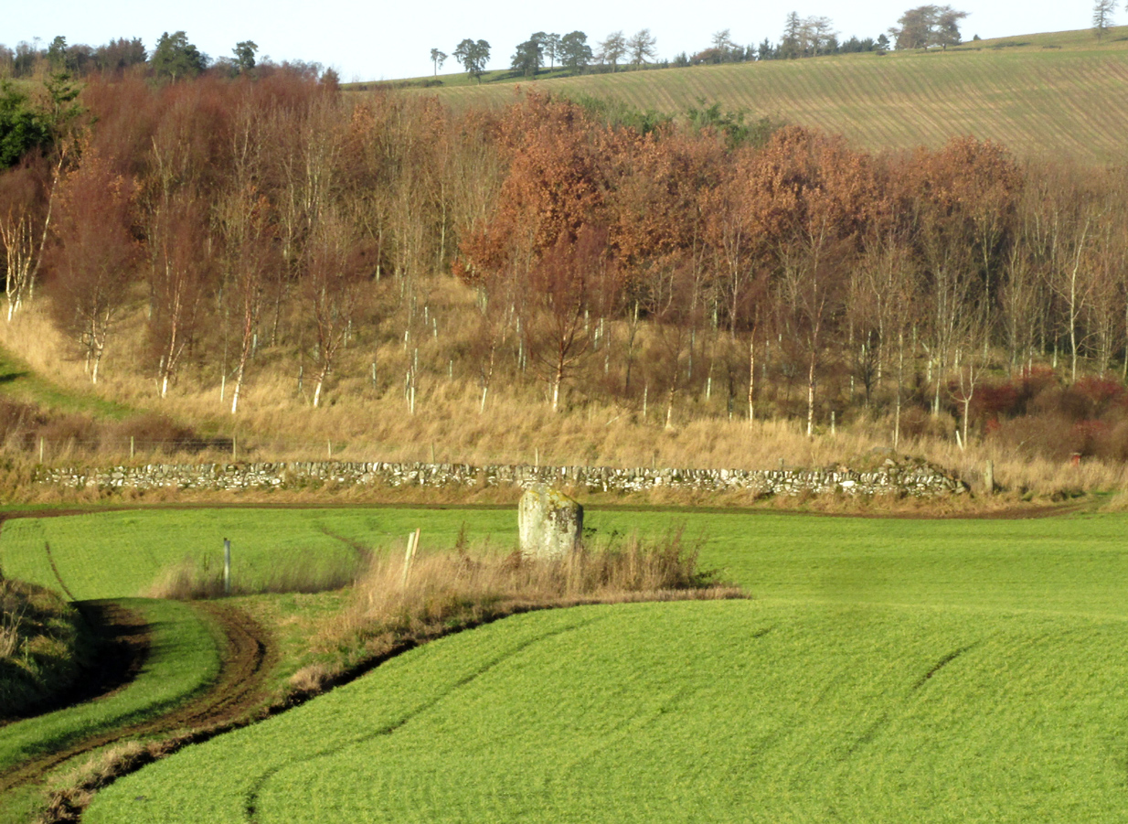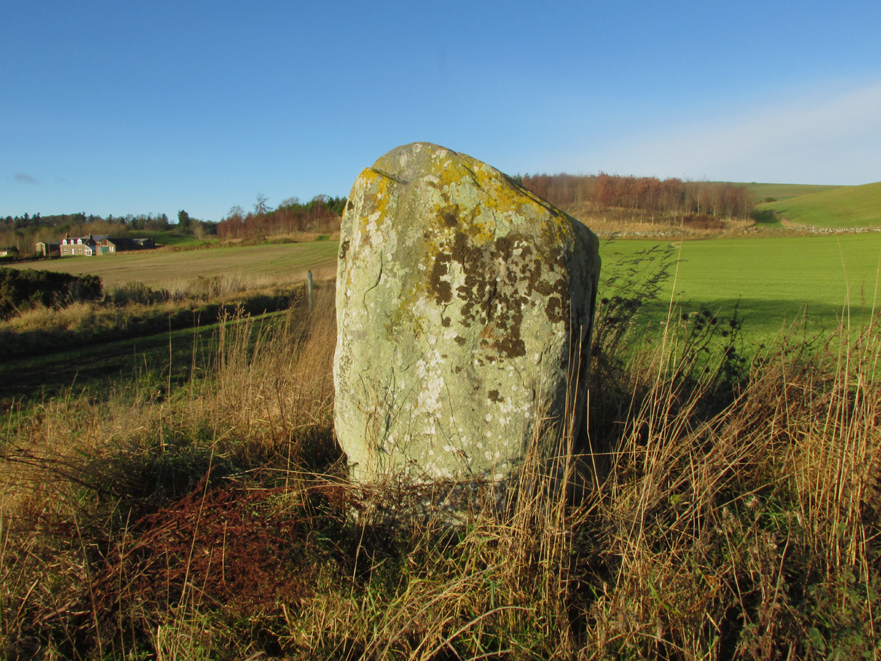 There is one stone here that survives from a megalithic ring that was progressively destroyed some time between the publication of the 1792 Old Statistical Account and the publication of the 1867 OS map. Reverend James Smith, writing in the 1792 Statistical Account, told us: