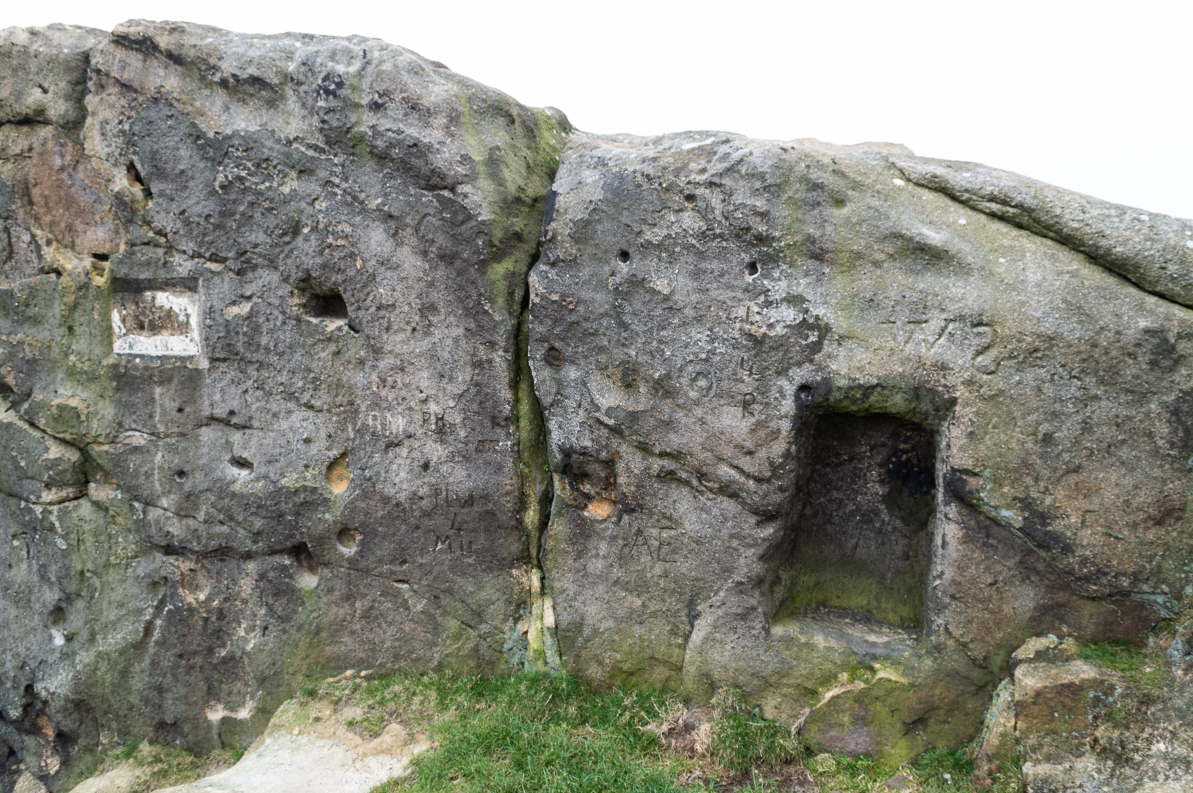 In 1702 when the northern antiquarian Ralph Thoresby mentioned this and its big brother to the southeast, he described the “two famous crags of Almes Cliff—in some old writings called Aylmoys ut dicitur—but have seen nothing memorial of it, saving its remarkable lofty situation.” He missed the cup-and-ring carving on the east-side of the crags, obviously, which indicates that it had some form of animistic sanctity in ancient times.