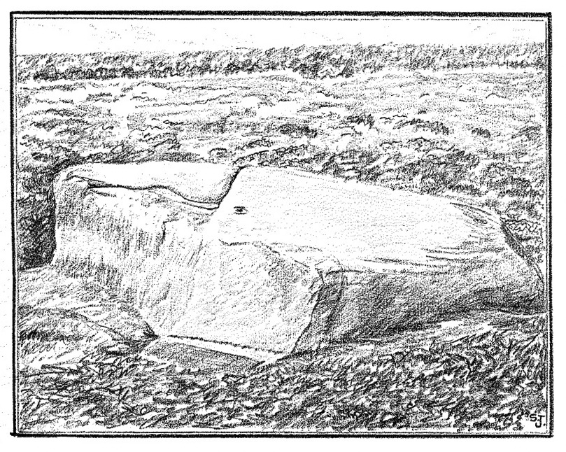 “It is an imposingly large and erect block of rugged whinstone, 9 feet 9 inches in height, with a basal girth of 15 feet 10 inches, but at about midway of its height the girth increases to fully 17 feet. The view…shows the Stone as seen from the east.”
