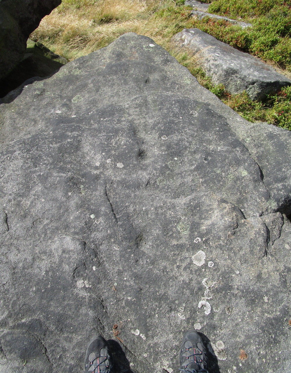 Altogether there are at least six cup-marks on here, but perhaps as many as eight. Obviously, if we (or you) visit the site when the light is much better, an even larger design might emerge from this old rock.