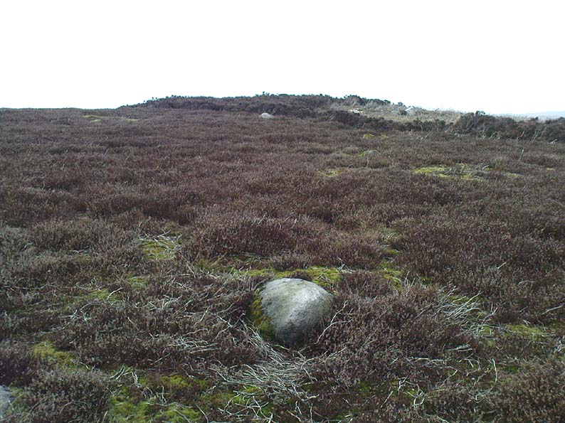 Ascribed by some as neolithic, and others as Bronze Age (the more probable), here is a curious archaeological relic: curious, inasmuch as it’s received very little attention from archaeologists. It’s quite a large monument — and perhaps the fact that it has always seemed to be in isolation from other prehistoric remains has held it back a little. But recent ventures here have brought about the discovery of more cairns (though singular small ones), neolithic walling, hut circles and other prehistoric remains that have never previously been reported.