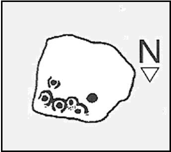 This carving isn’t much to look at on two levels: i) it’s a pretty simplistic design with no rings, and (ii) it’s very faint and almost impossible to see until the light is just right—except for one of the cups, which itself might be natural (there are a few like that amidst the Askwith complex). It’s very much a carving for the purists among you, as I always say. Nonetheless, for the record: