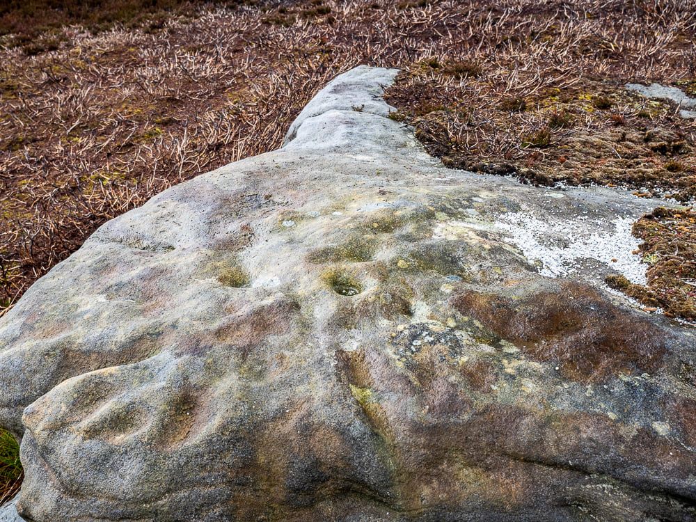 It literally is just like a large dome of rock, with carvings on certain sections of it. Half of the cup-marks are easy to see, especially the ones near to the top of the dome and which exist in three main clusters. Much more faint is another, larger cluster of cups, on its south-side.