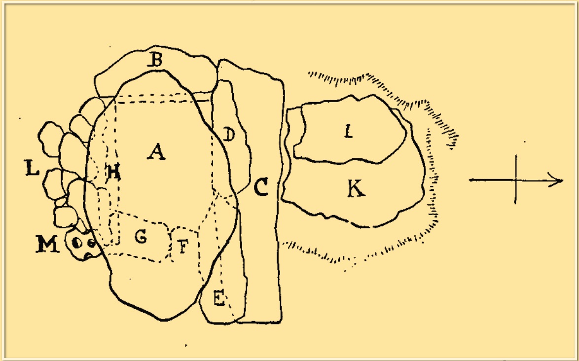 One wonders where precisely the hedgerow happened to be where the stones were placed “nearly in their original posture”, and if this reconstruction was ever recovered.