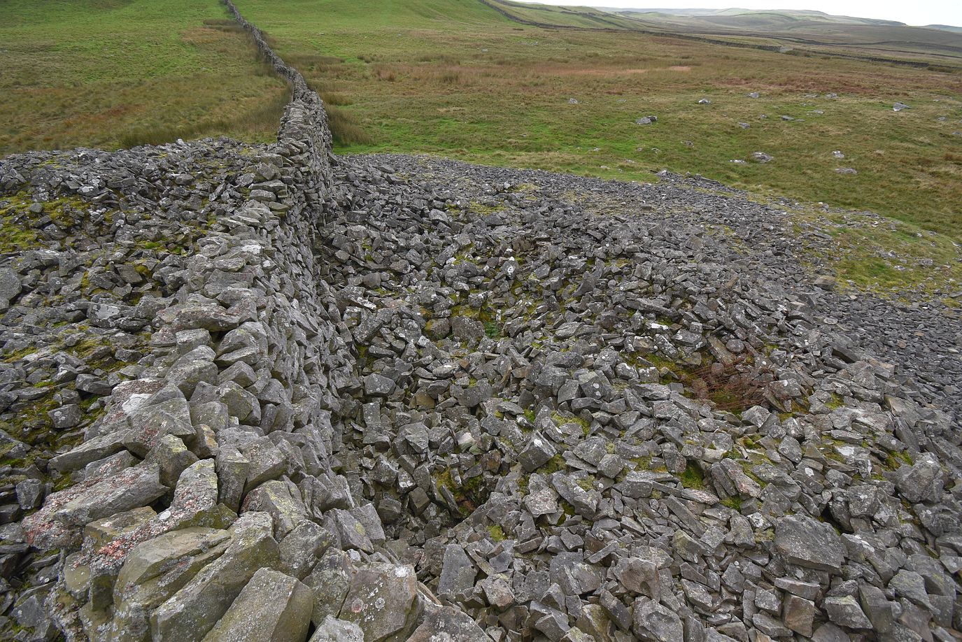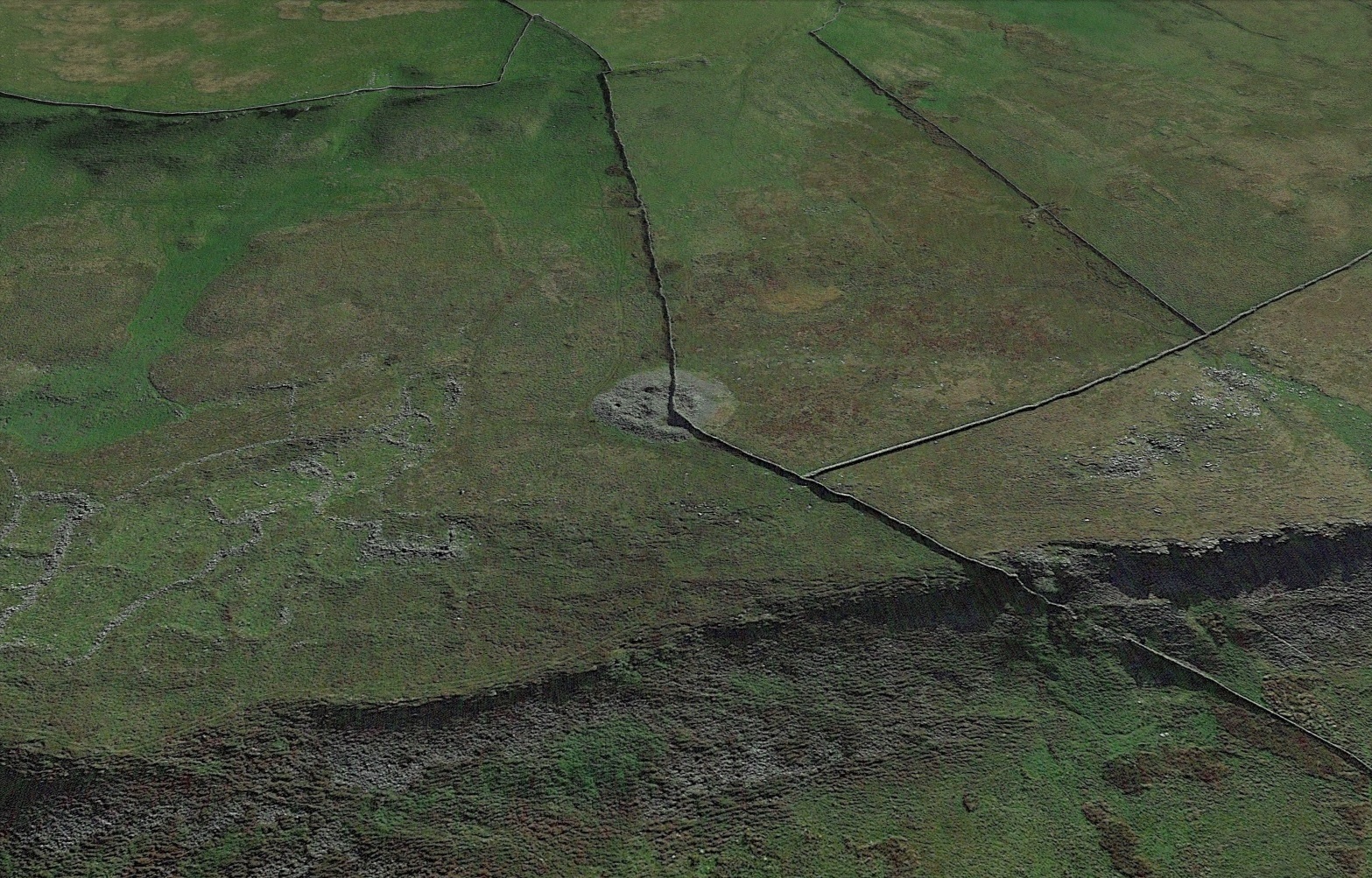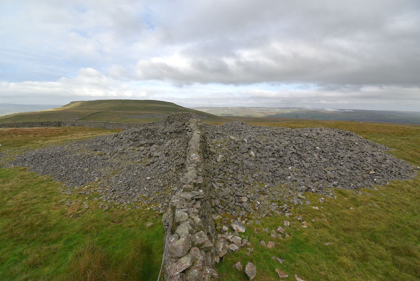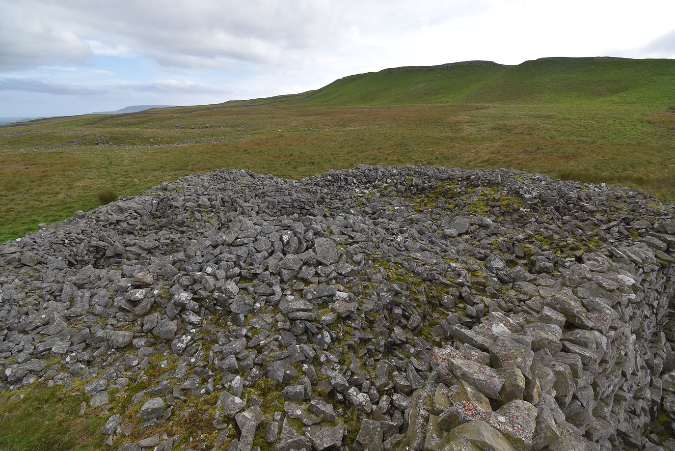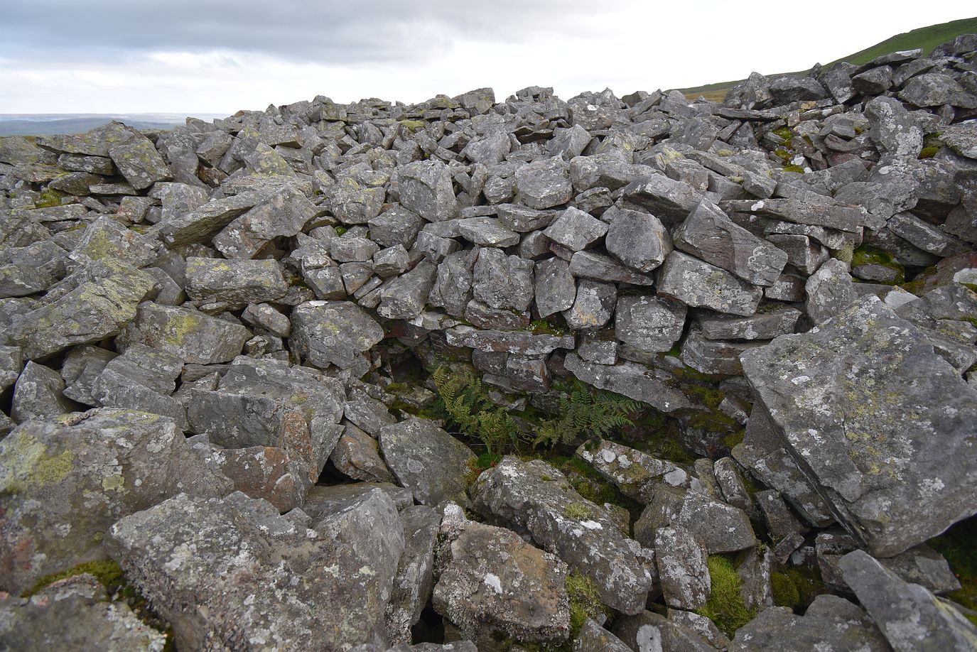 From Bainbridge, take the A684 road east to Aysgarth. Just out of the town, 200 yards over the bridge, take the right turn down Blean Lane. Nearly ½-mile along, take the minor road on your left and go along here for 1½ miles where, a few hundred yards before the solitary farm of Carpley Green (lucky buggers!), you can park up. (keep plenty of room for a tractor to get in the fields) Walk down the track past the farm and 250 yards along, where the first field ends, a gate leads you into the hills on your left. Go through here and then the next gate 120 yards on, then walk straight along th elong geological ridge ahead of you, veering to the top-side until it meets the walling. You’ll see the giant Stoney Raise cairn on the other side.
