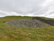 The tomb was said to be where a local giant had fallen and with him was buried a great chest of gold which he had dropped before he died. Some say that the ‘giant’ was a Brigantian chief – others a great warrior. The great treasure chest beneath the cairn is said to looked over by a fairy who lived by the giant’s tomb. It was this tale which gave the site its local name, the ‘Golden Chest on Greenber’. Several attempts made to find the treasure have all failed to uncover it.