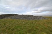 “there is still on that elevated spot a cairn, called Stone Raise, about 120 yards in circumference at the base, to which the usual tradition of its containing a treasure of gold having been attached, two persons were several years ago induced to make the experiment; but having penetrated to the centre, found, to their great disappointment, what an antiquary would have prepared them to expect, namely, a kist vaen of flag stones, with the remains of a human skeleton, the teeth of which were still pretty perfect.”