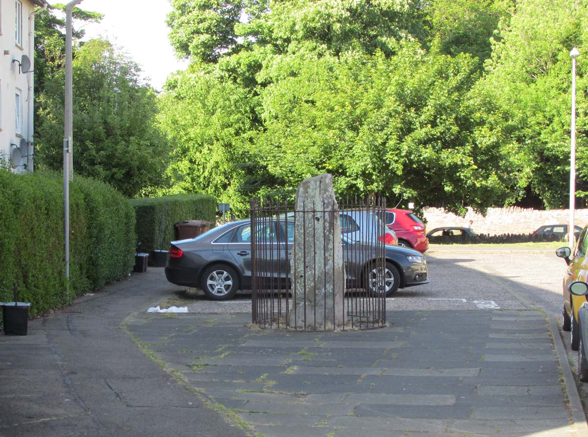 Take the A7 road south from Edinburgh central (off Princes Street) for several miles. It becomes known as the Old Dalkeith Road eventually, just as it passes the huge wooded ground of Craigmillar Castle on your left (east) and the Inch estate on your right. Walk along here, keeping your eyes peeled for the small path that takes you onto Ravenswood Avenue. Barely 30-40 yards from the main A7 road, the standing stone is there surrounded by railings.