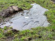 Due to the landscape being so overgrown, it’s difficult to ascertain where this ‘trackway’ begins and ends. Added to this, we find that there are additional ‘trackways’ that run roughly parallel to the one that runs through the circle—and these ‘trackways’ are very old indeed, some of them likely have their origins way back in prehistory. The one that runs through the middle of this ring cairn may be a ceremonial pathway along which, perhaps, our ancestors carried their dead. If we follow it out from here and keep walking along the track 300 yards to the southeast, we eventually run right to the edge of the Craven Hall (3) circle. Parallel to this is another ancient trackway that runs northwest to the edge of the Roms Law circle. It seems very much as if we have ceremonial trackways linking sites to each other: ancestral pathways, so to speak.